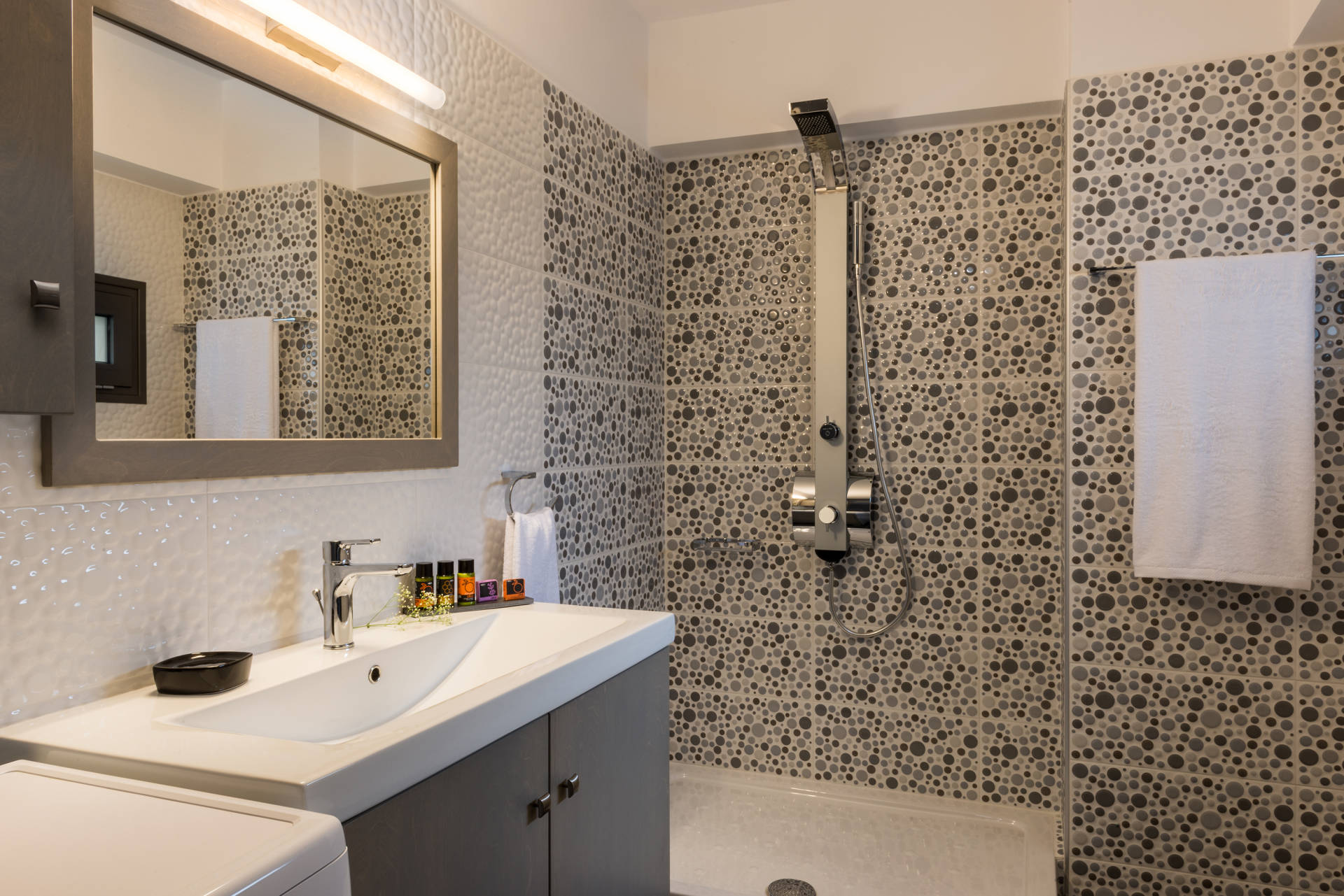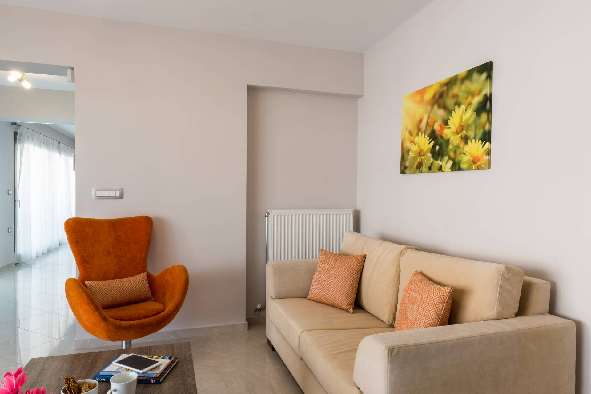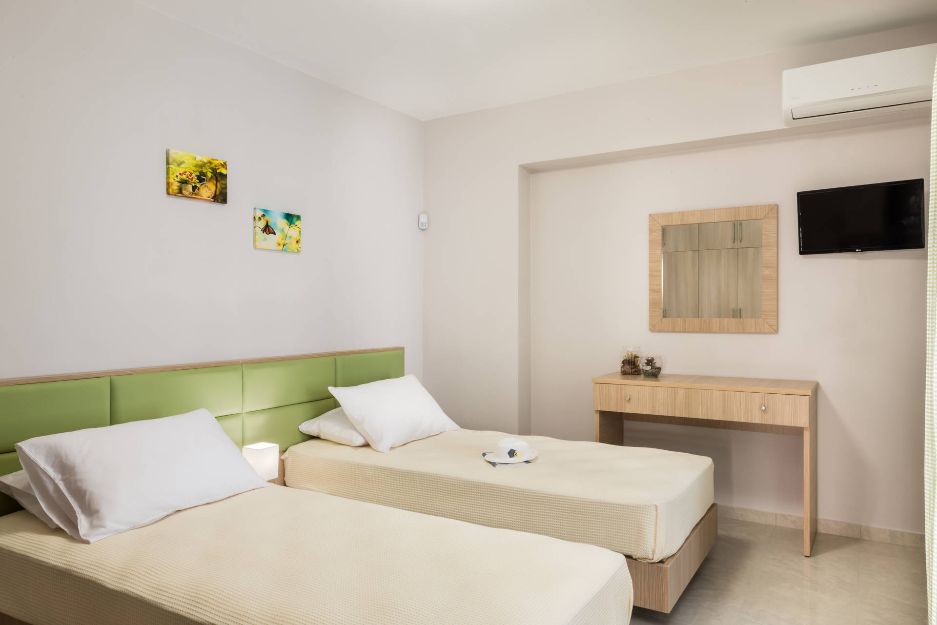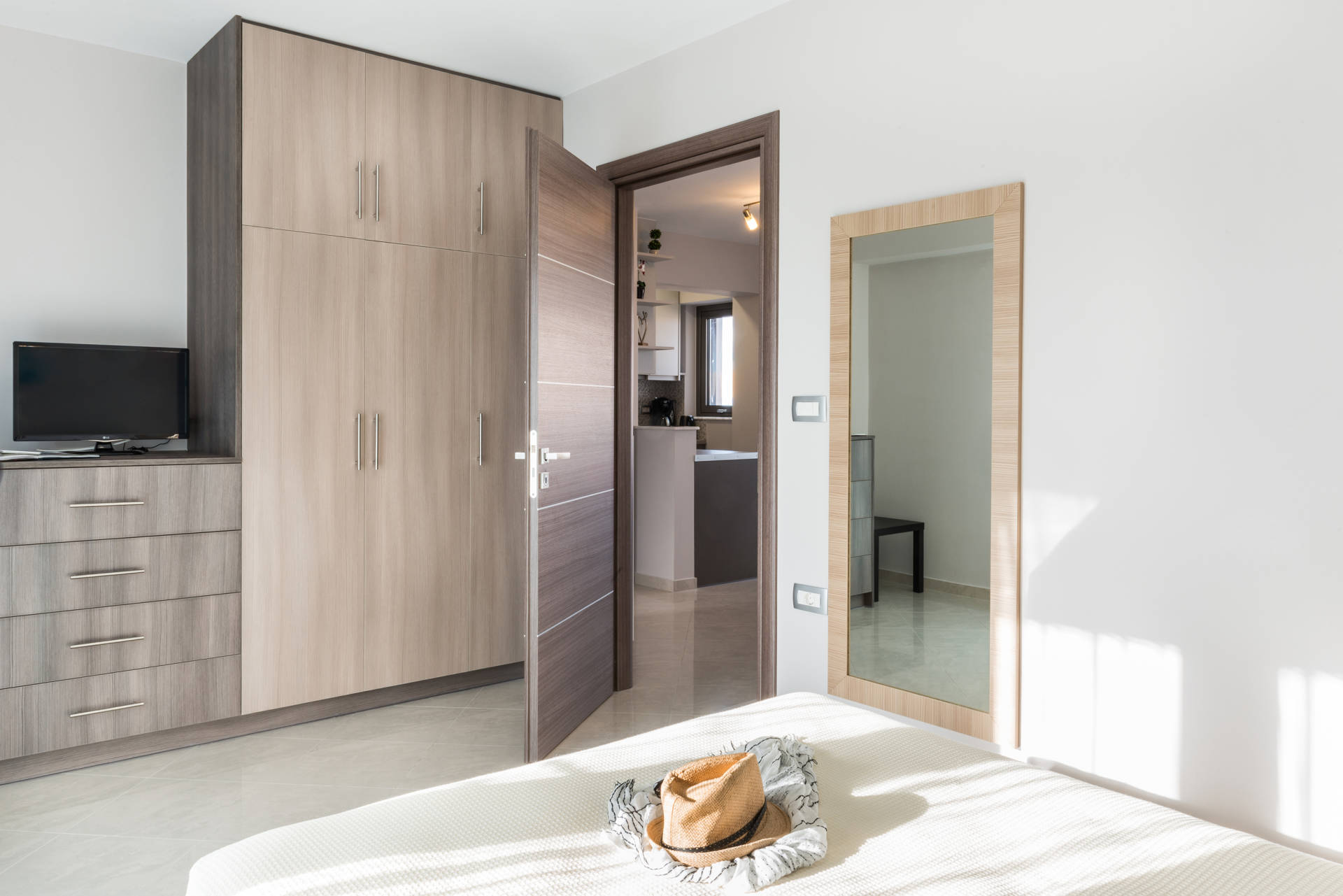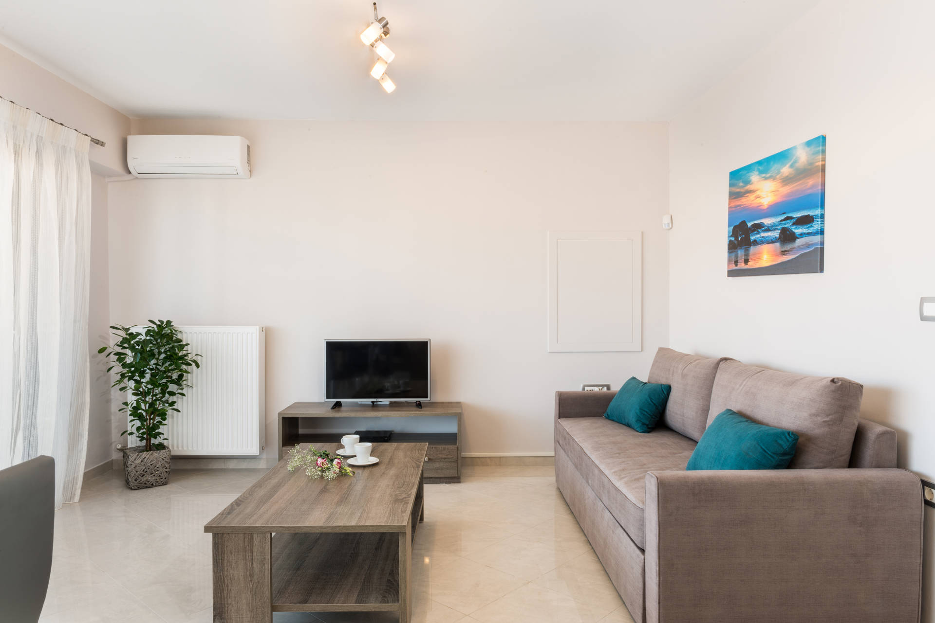 The flats are spacious with a modern and minimal style and also fully equipped for your stay all through the year. In the afternoons the esplanade of Maleme, 2 km long, is great for relaxing strolls or bicycle rides along the beach.