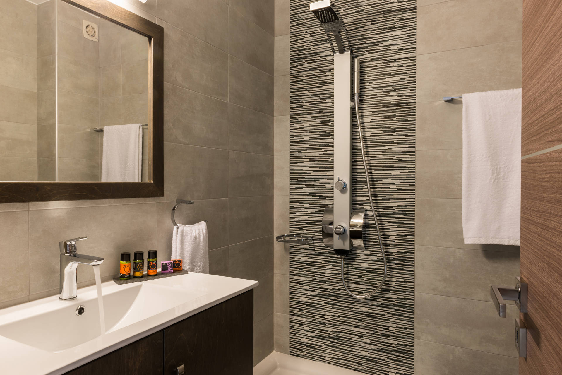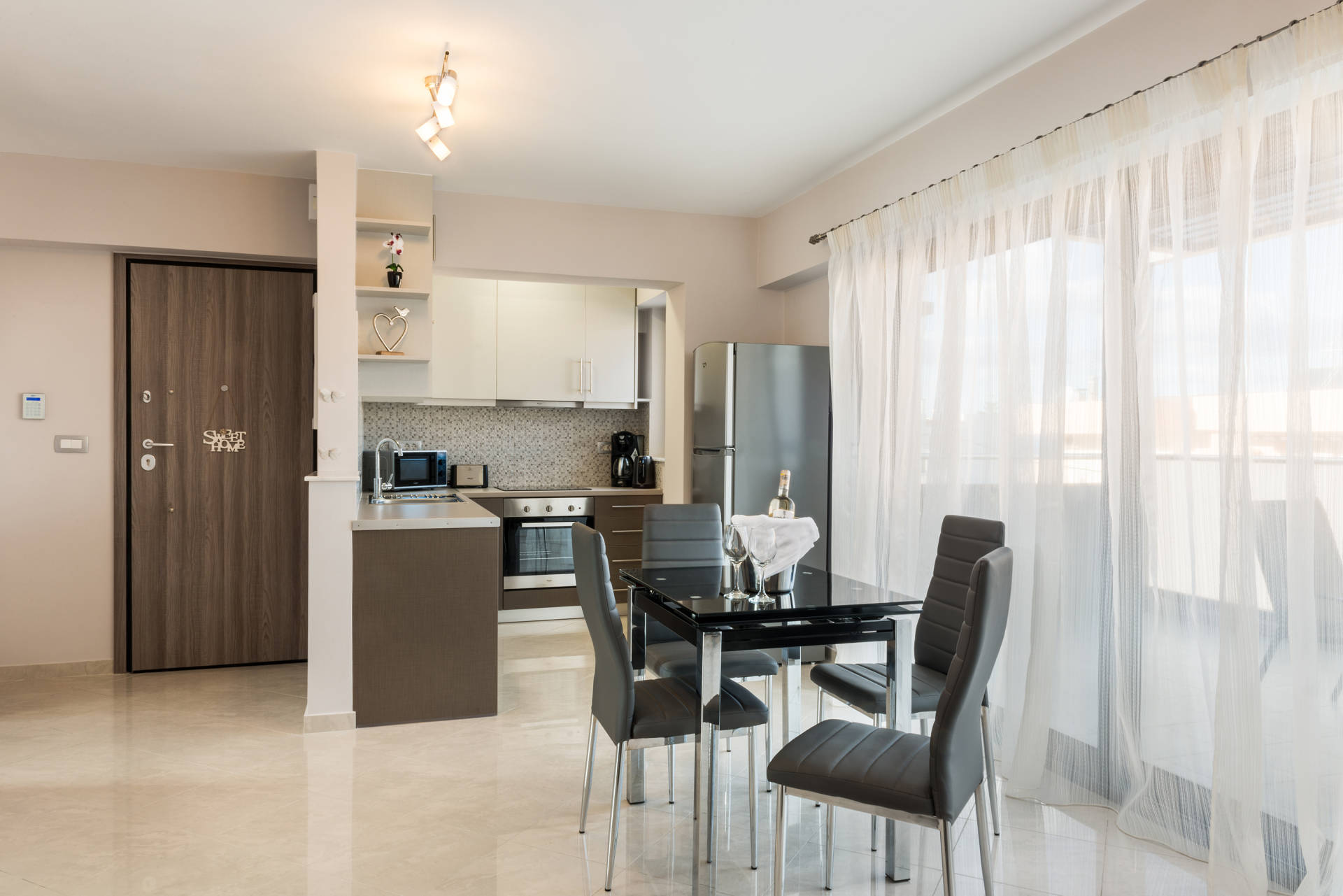 The apartments are in a modern building complex run by a family which are built to combine aesthetic quality and comfort and high class services.